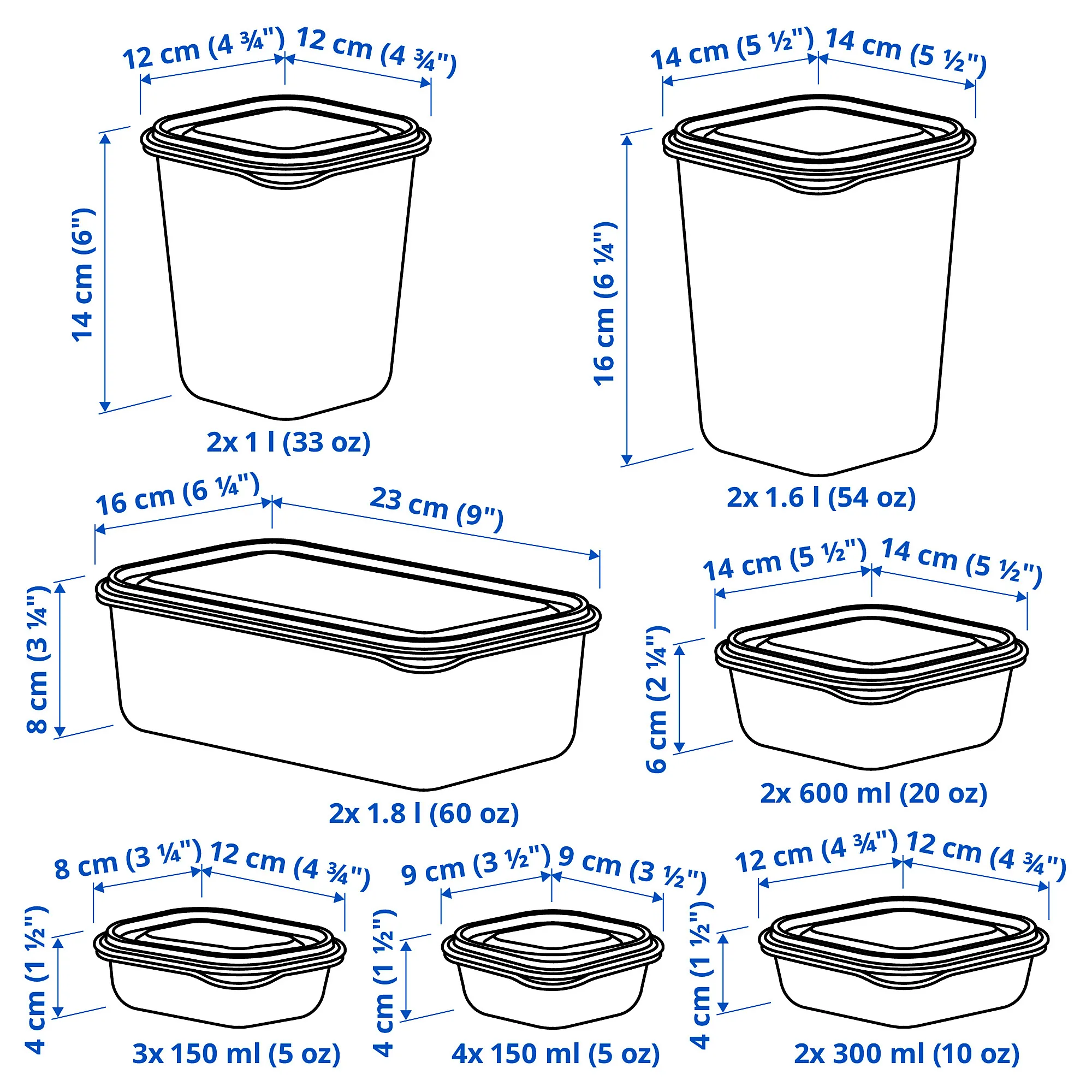 Penyimpanan makanan yang praktis dan penuh warna! Set 17 wadah makanan ini memiliki apa yang Anda butuhkan untuk semua makanan lezat yang Anda miliki di rumah ─ mulai dari camilan anak-anak hingga makan siang yang lebih besar untuk kantor atau tamasya.