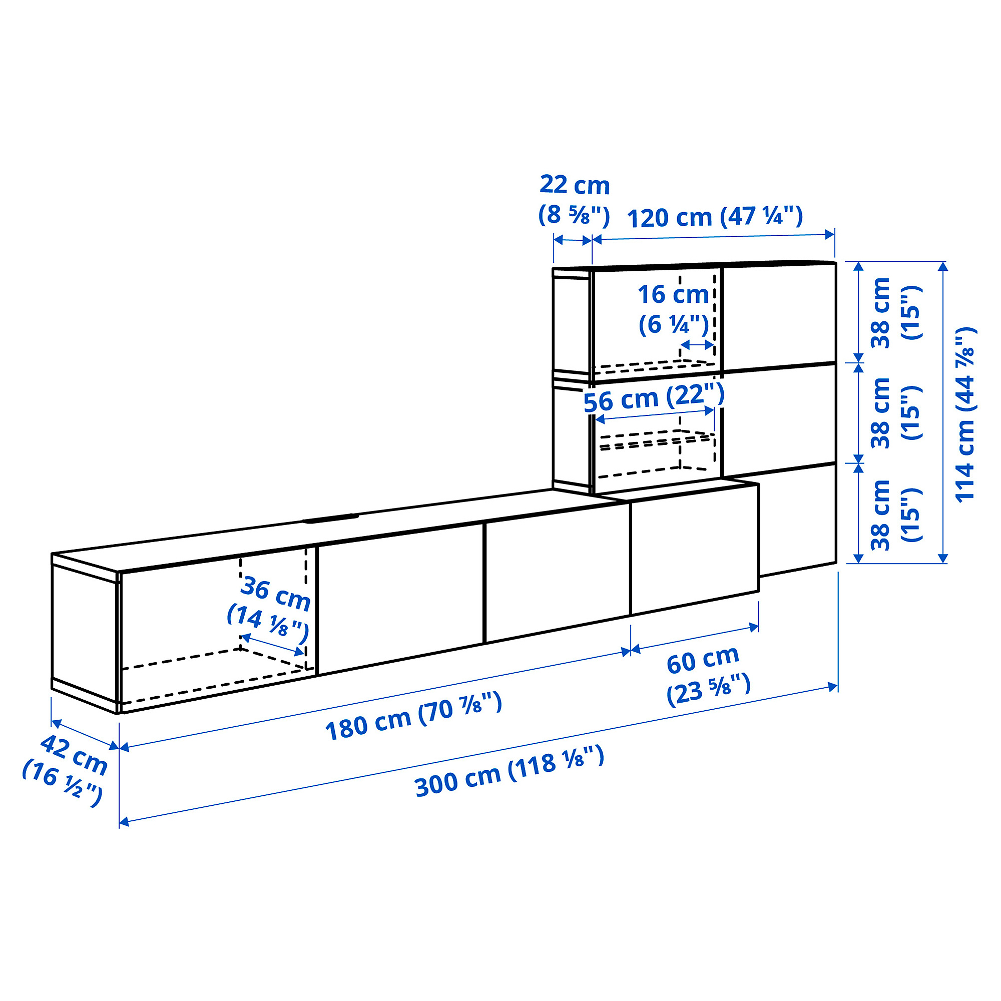 Rel suspensi BESTÅ untuk pemasangan di dinding sudah termasuk.