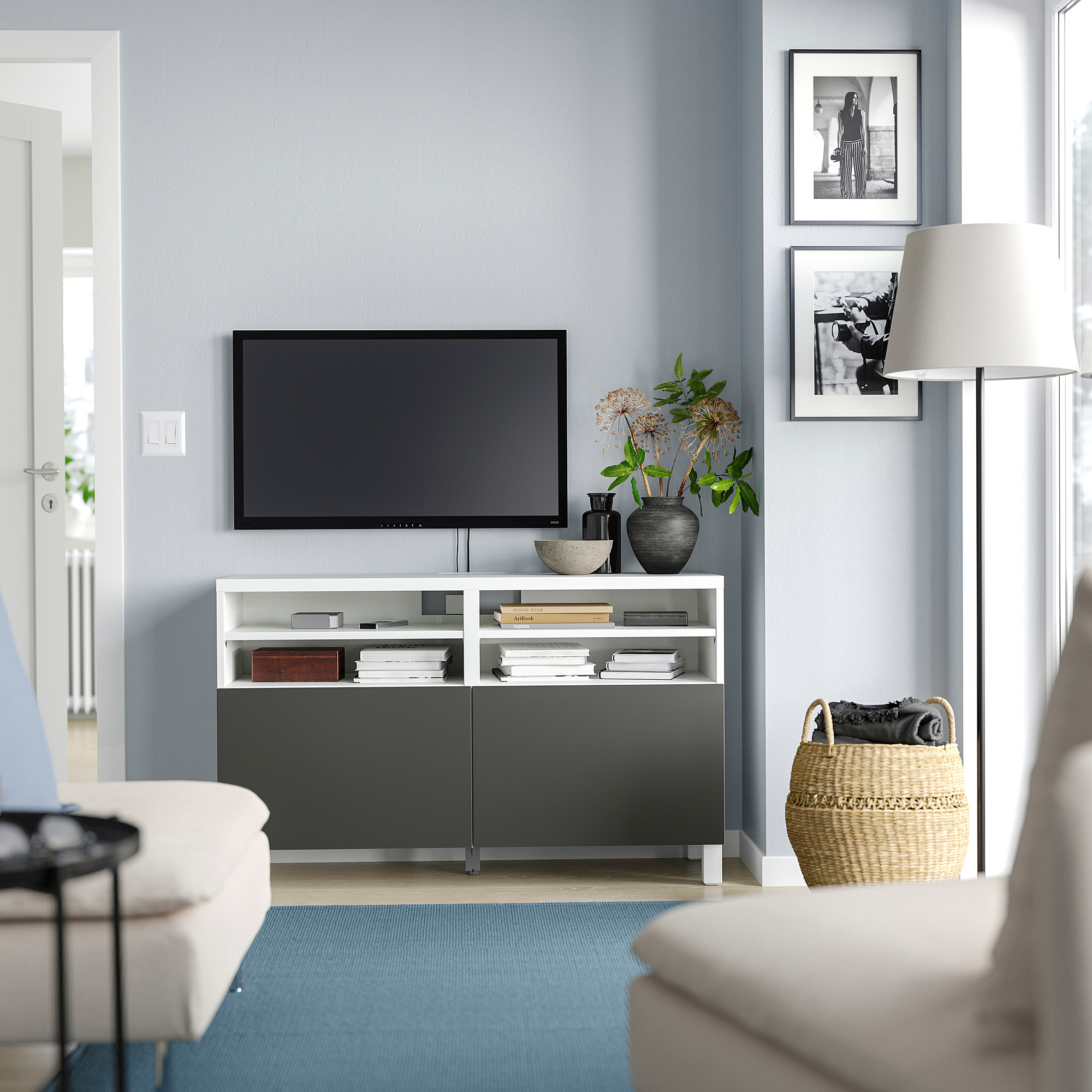 Bukan hanya TV yang cerdas! Meja TV BESTÅ menggabungkan tampilan yang indah dengan fungsi. Anda mendapat tempat penyimpanan yang banyak dan bebas kabel kusut yang biasanya mengumpulkan debu.