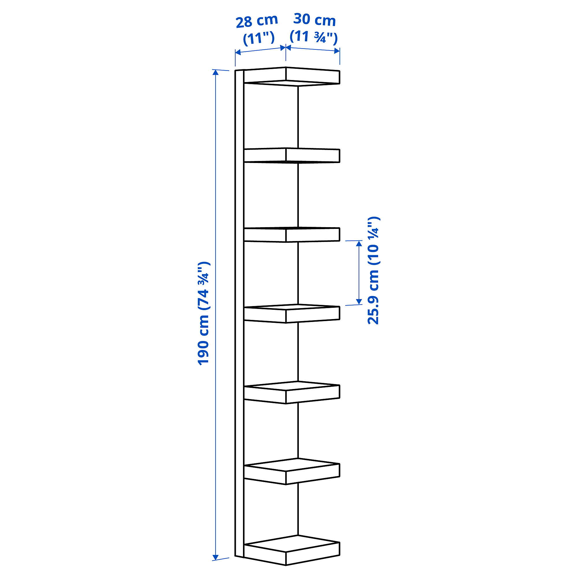 Unit rak dinding, putih, 30x190 cm
