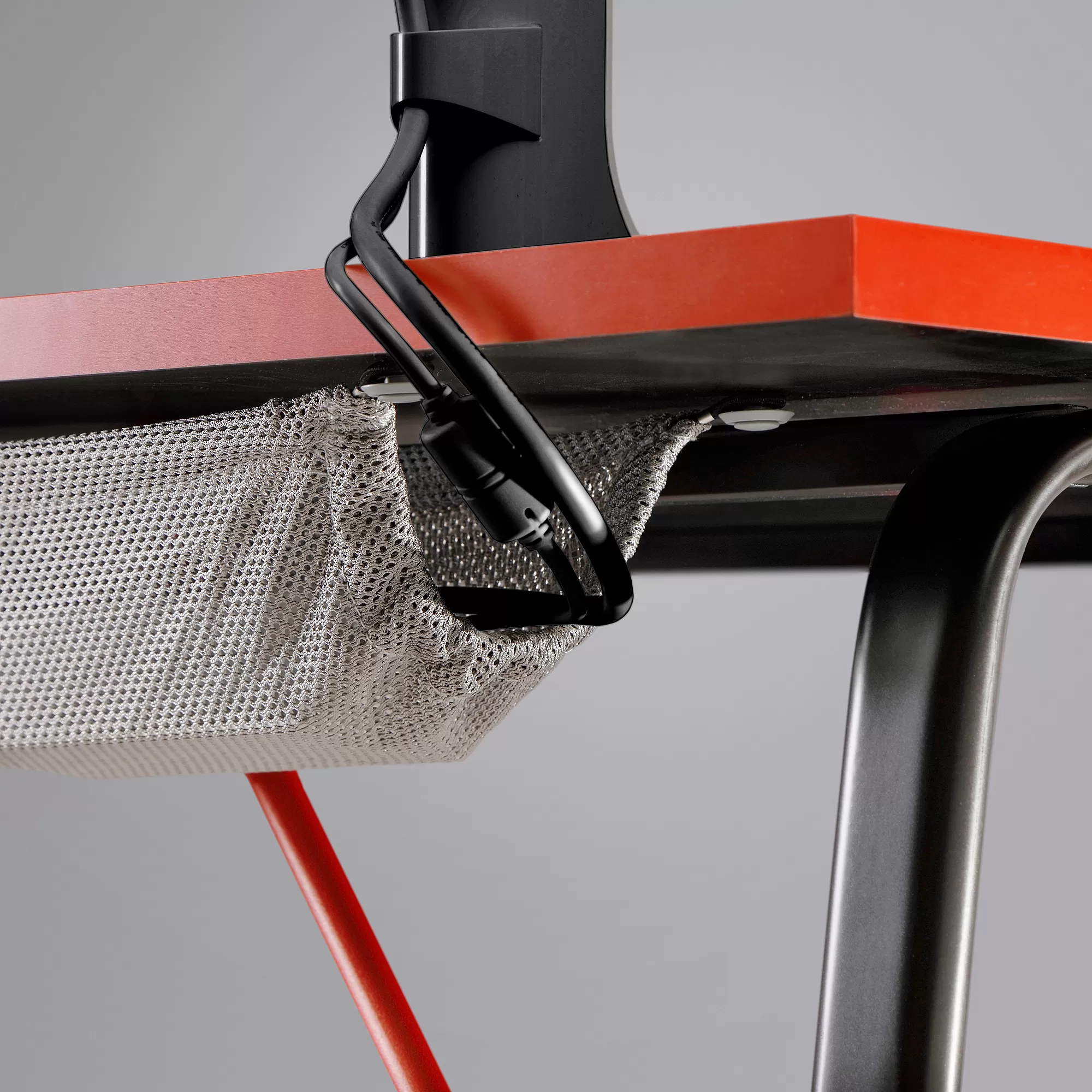Mudah menjaga meja rapi dan teratur dengan menggunakan saluran kabel di bawah permukaan meja.