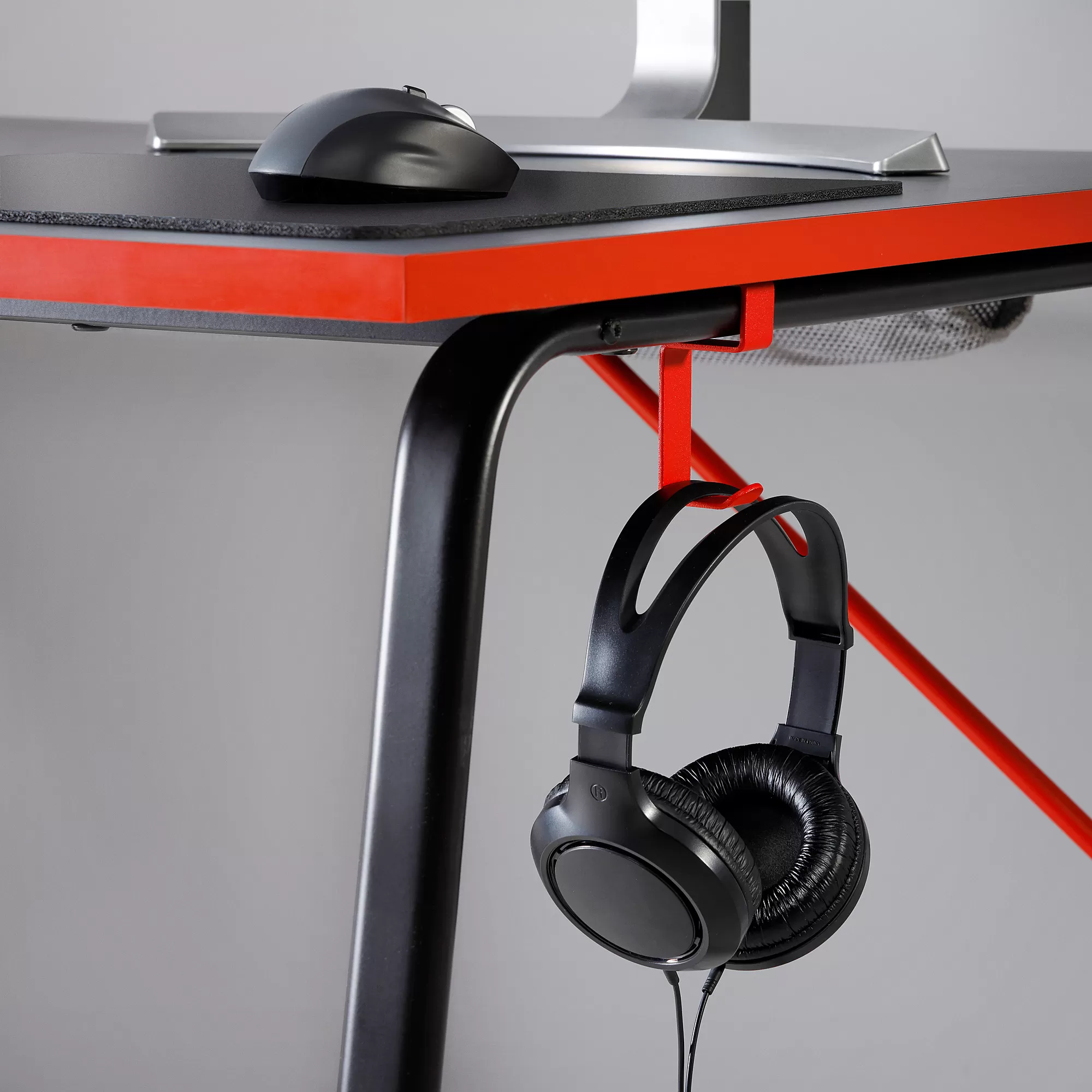 Meja gaming ini memiliki semua fitur utama yang membantu Anda bermain di puncak permainan: stabilitas, manajemen kabel, dan pengait untuk headphone Anda. Pilihan bagus bagi mereka yang ingin fokus bertanding.
