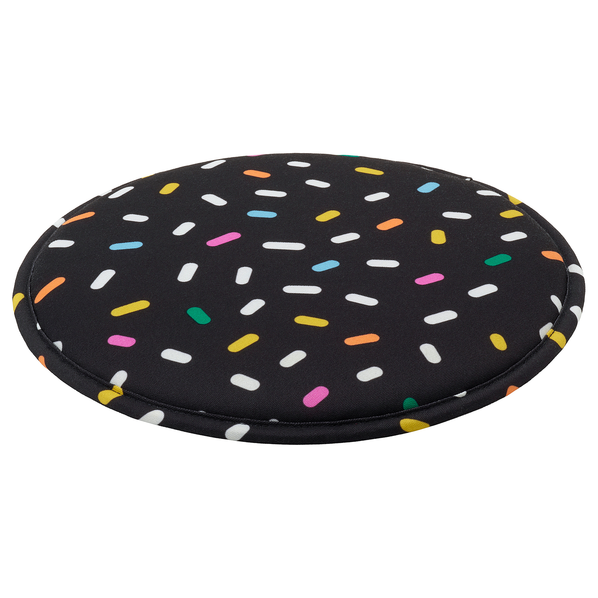 Bantal lembut berbentuk bulat dengan motif taburan warna-warni dan ceria ini mengubah bangku LASTARE Anda menjadi tempat duduk yang nyaman untuk Anda dan seorang teman – dua bantal dapat diletakkan di atas bangku.