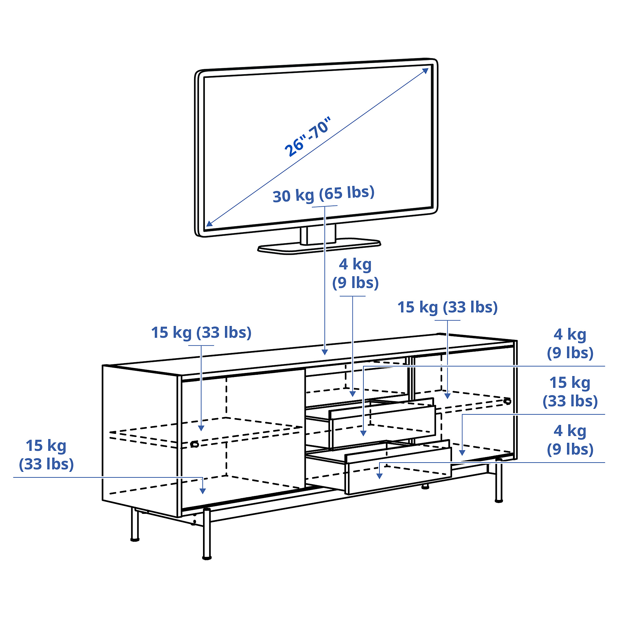 Bangku TV RÅDMANSÖ memiliki ekspresi kayu dengan warna kenari yang hangat yang menciptakan bingkai yang indah untuk menyimpan, mengatur, dan memajang barang-barang Anda.