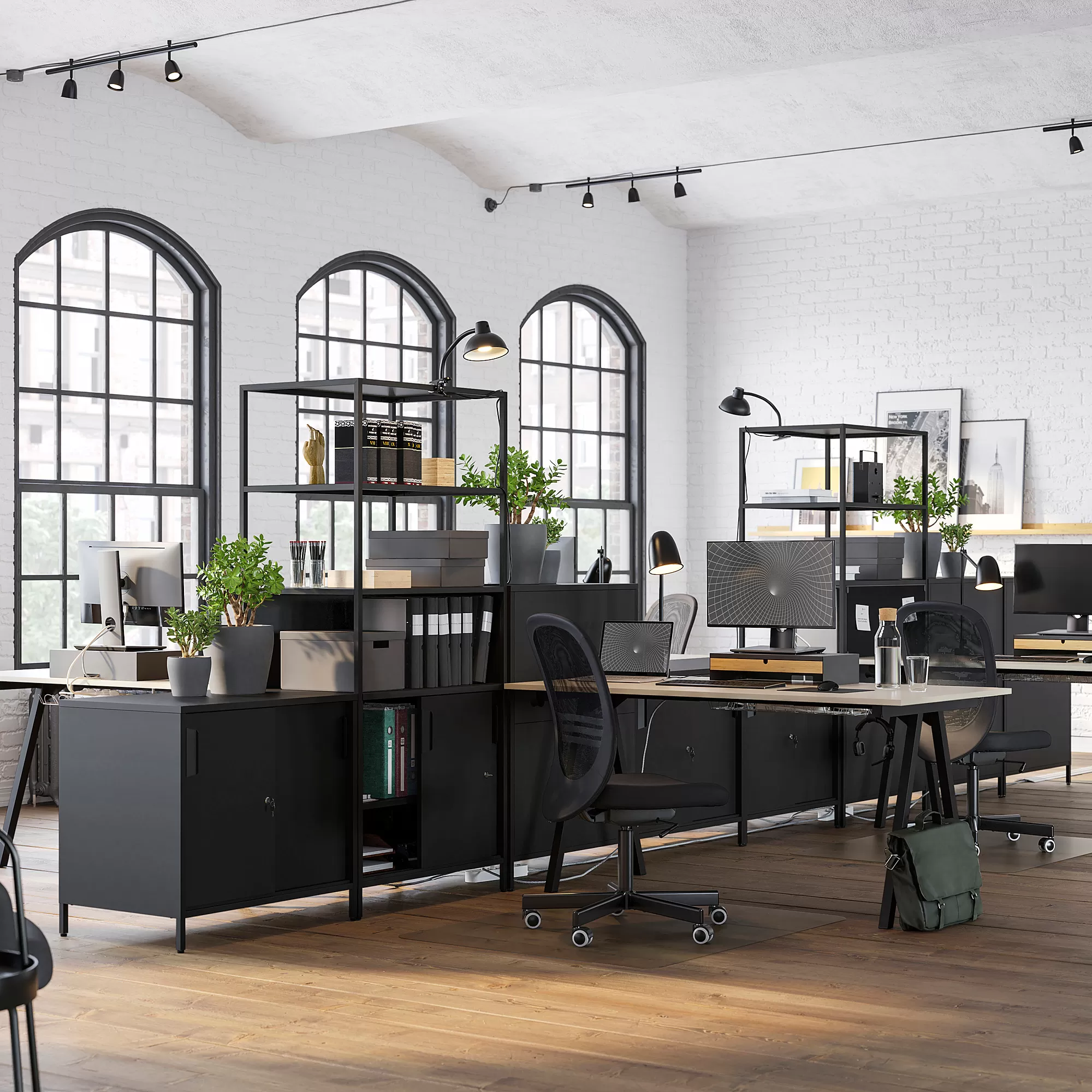 Meja TROTTEN sangat cocok dengan kursi kantor FLINTAN.
