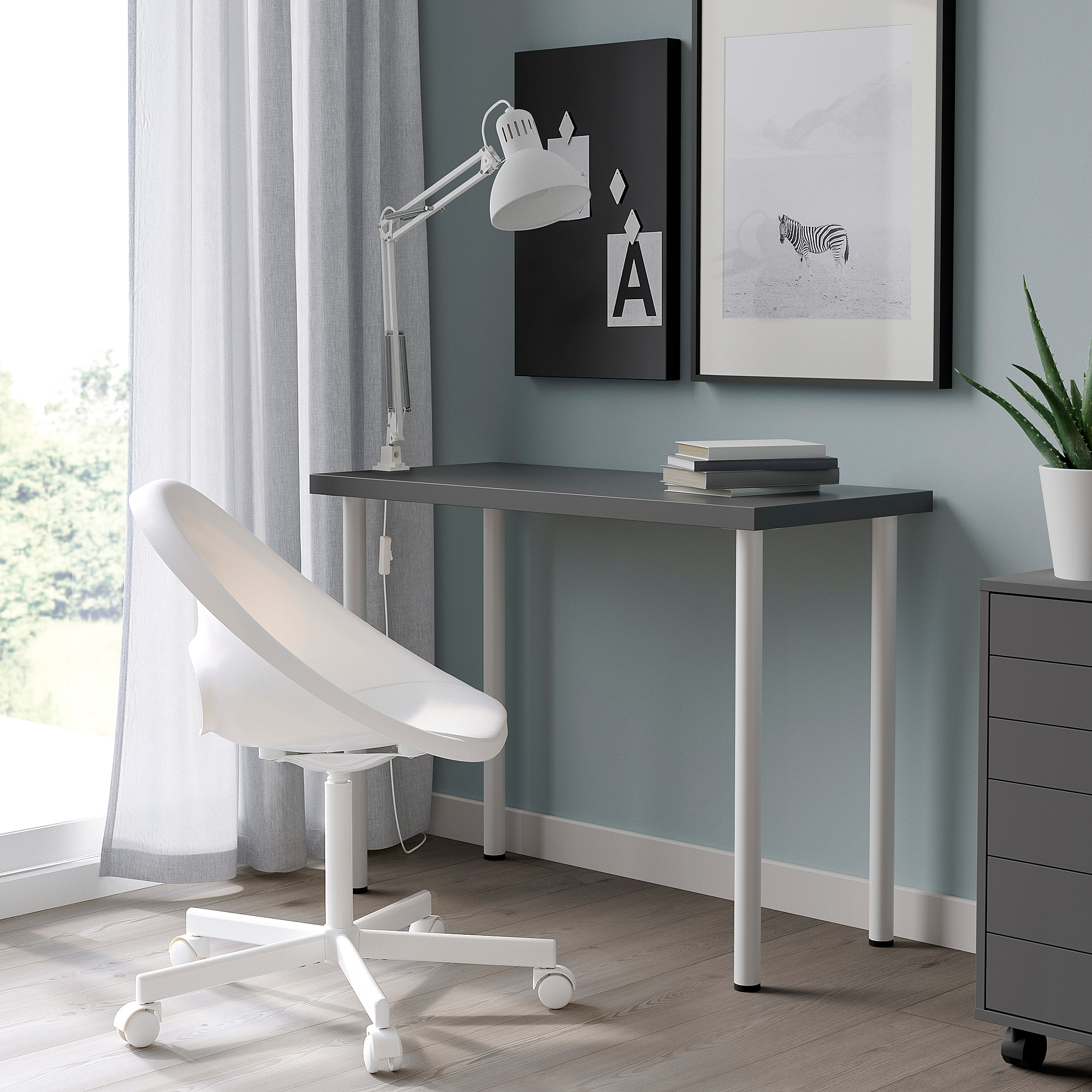 Nikmati lebih banyak permukaan meja dengan ketinggian yang sama dengan menghubungkan bagian atas meja LAGKAPTEN dan LINNMON dengan mudah dengan kaki-kaki yang serasi - bersebelahan atau dalam bentuk L.