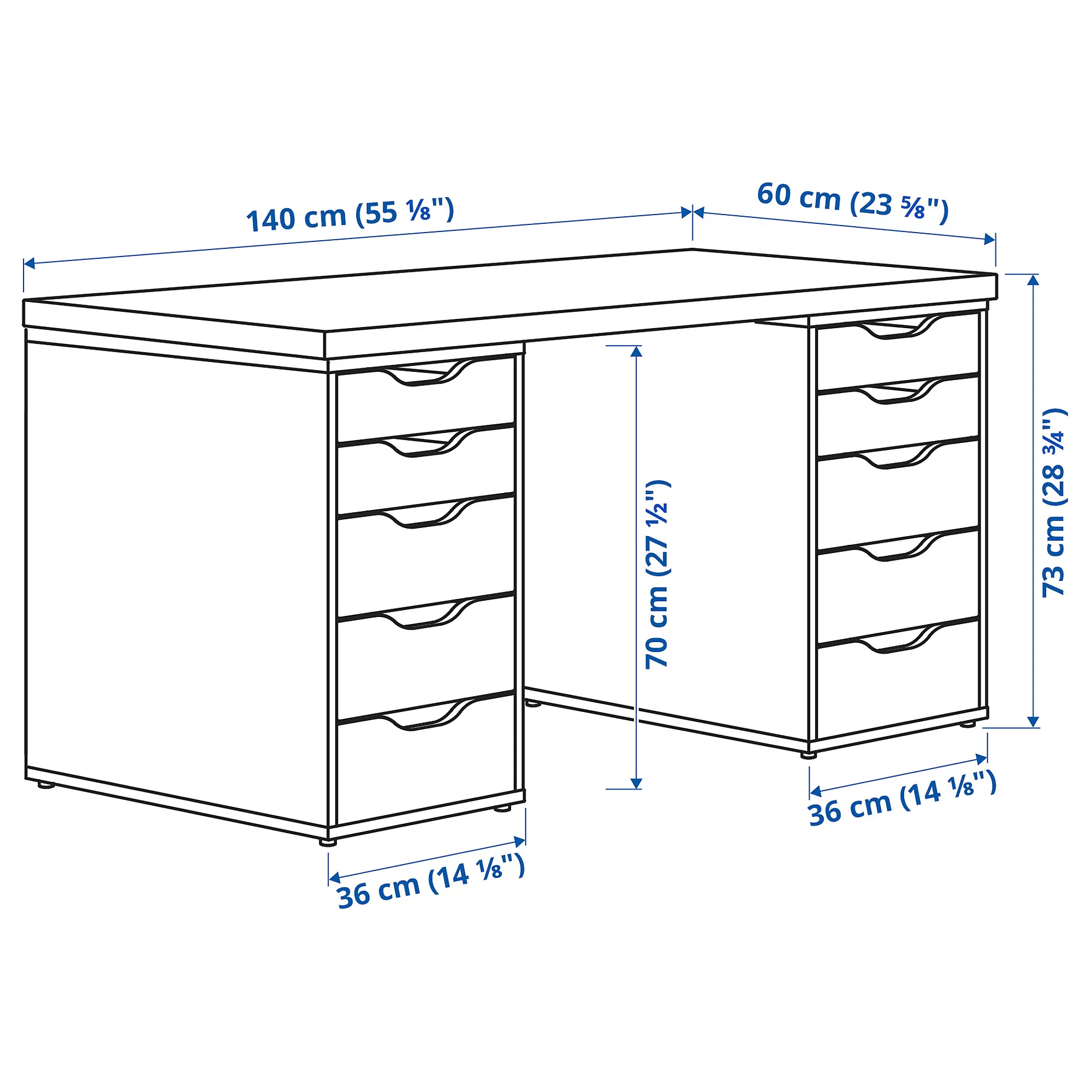 Meja ini telah dikembangkan dan diuji untuk penggunaan di rumah dan tidak cocok untuk penyangga layar. Berat maksimum yang didistribusikan secara merata adalah 50 kg. Jangan letakkan beban melebihi 15 kg di atas permukaan kecil di atas meja.