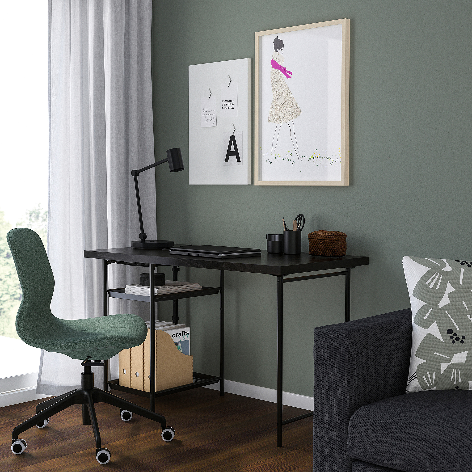 Pada 2 rak terdapat ruang untuk kertas, notes dan buku, yang membebaskan ruang pada bagian atas meja.