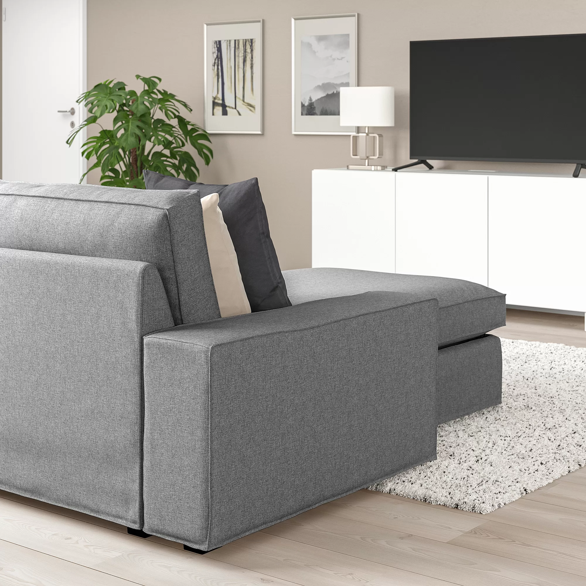 Berbaring di atas sofa KIVIK yang nyaman. Ukurannya yang besar, sandaran tangan yang rendah, dan pegas saku dengan busa yang menyesuaikan dengan tubuh mengundang Anda dan tamu Anda untuk bersosialisasi dan bersantai selama berjam-jam.