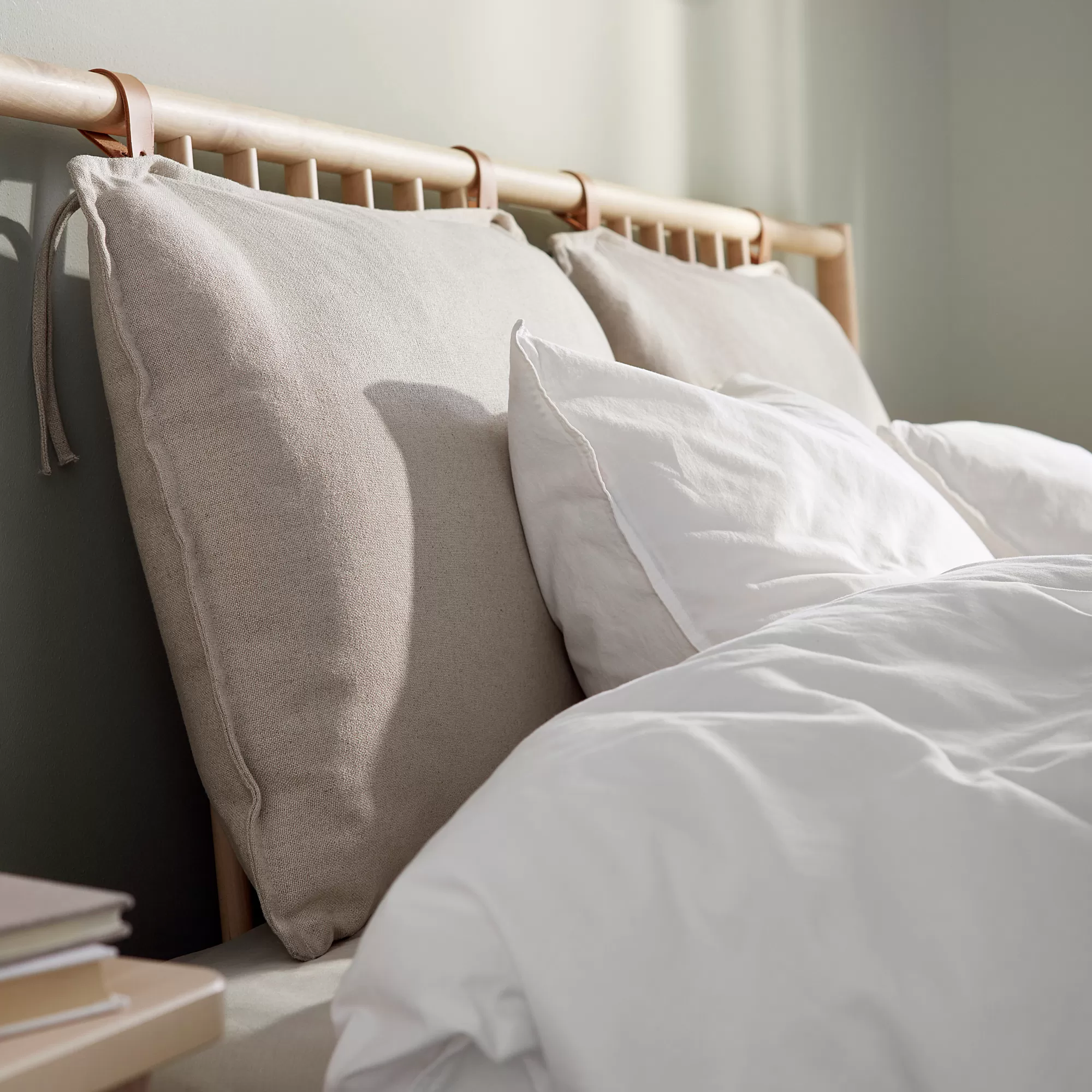 Material alami seperti kayu birch dan kulit serta pahatan kayu detail yang apik menciptakan tampilan yang rapi dan segar. Rangka tempat tidur ini adalah bagian dari koleksi BJÖRKSNÄS yang berakar dari tradisi kerajinan Skandinavia.