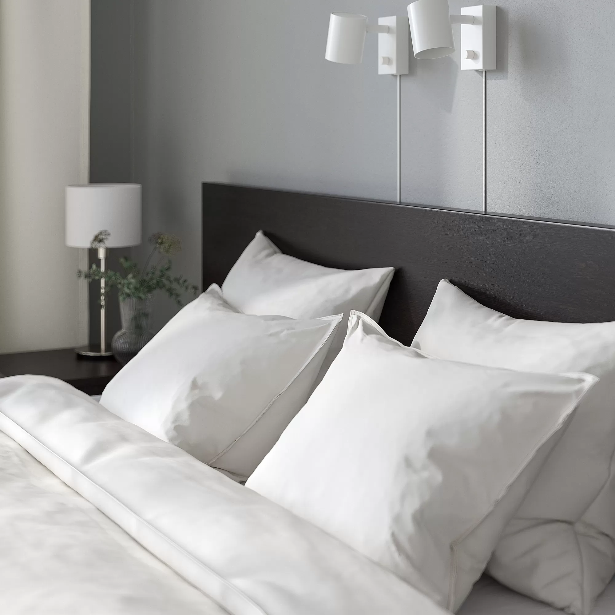 Anda dapat duduk dengan nyaman di tempat tidur berkat kepala ranjang yang tinggi - cukup pindahkan beberapa bantal di belakang punggung Anda dan Anda akan memiliki tempat yang nyaman untuk membaca atau menonton TV.